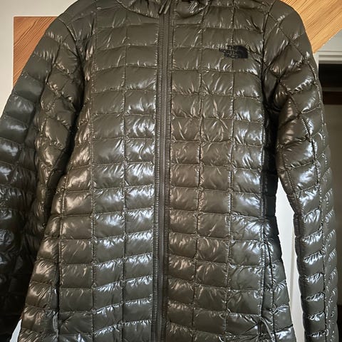 The North Face Vinterjakke i størrelse S til kvinder. Jakken er grøn og designet til at give varme og komfort i kolde vejrforhold. Materialet og konstruktionen er velegnet til vinterbrug.