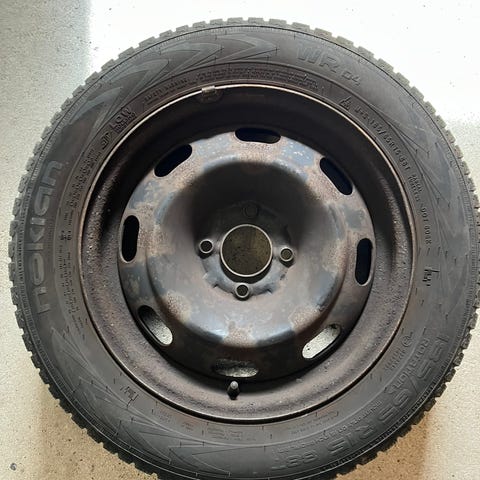Fra uge 50 2022. Slidt fra 8 til 6 mm, vintergodkendt, se billederne. På 4 stålfælge. Har været brugt 2 vintersæsoner på Citroen C3. Kan sagtens bruges 2 eller 3 sæsoner mere.