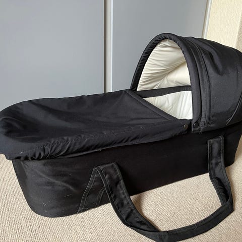 Der følger en lille tynd madras og en tykkere allergivenlig madras med fra Änglamark. Begge i flot stand. Ingen pletter. Betrækket på Änglamark madrassen kan lynes af og vaskes.