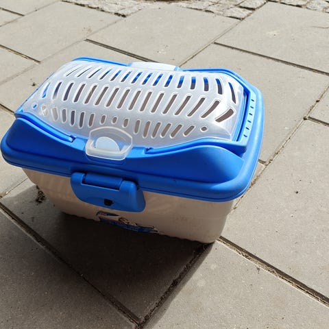 Fin stor transportkasse til større gnavere. Fejler intet, er intakt. Kan åbnes både i siden og i toppen.