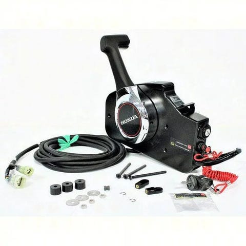 Honda Tohatsu gas gear boks, fjernbetjening, til panel montering. Bemærk BAGBORD kan ikke vendes. Typisk brugt til styrepulten. panel med krontrollamper og tænding medfølger samt ledningsnet. Ja, nøglen følger med. Fungere med BF40-BF250 motorer Ny pris 11.660-