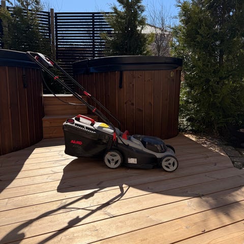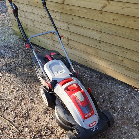AL-KO Moweo 3.85 Li er en batteridrevet plæneklipper med en klippebredde på 38 cm. Aldrig brugt har bare stået, lader medfølger. INGEN batteri, batteri kan stadig købes.