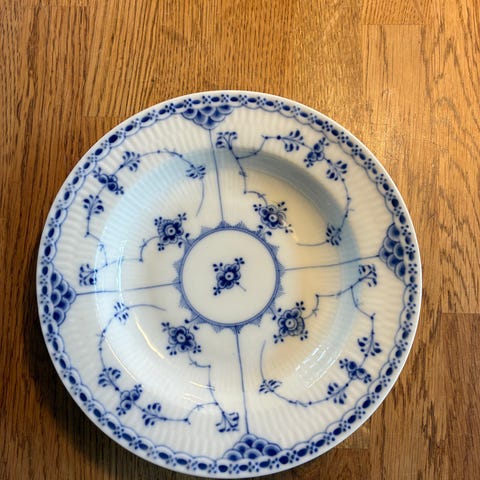 Sælger 2 stykker Royal Copenhagen tallerkener i serien Hvidriflet Halvblonde, diameter 22 cm.