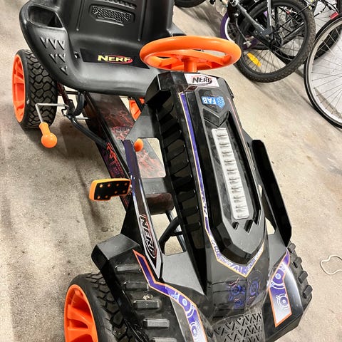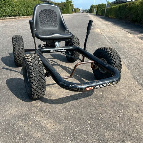 Berg Rally Gokart i grøn metal, designet til børn. Køretøjet har fire hjul og et sæde med ryglæn. Passer til udendørs leg og kørsel på jævne overflader.