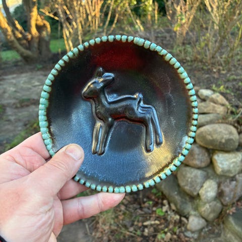 Grønt fad med let bølget kant.