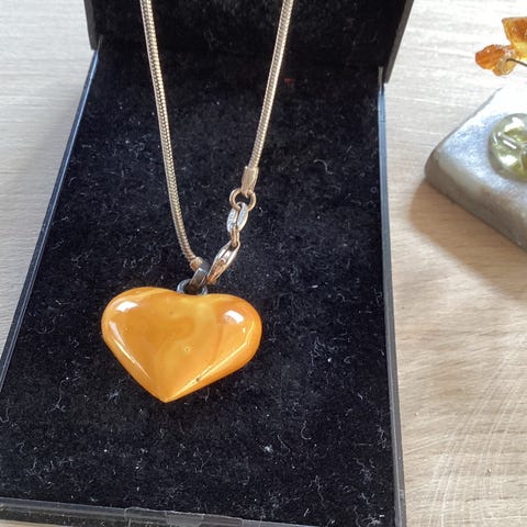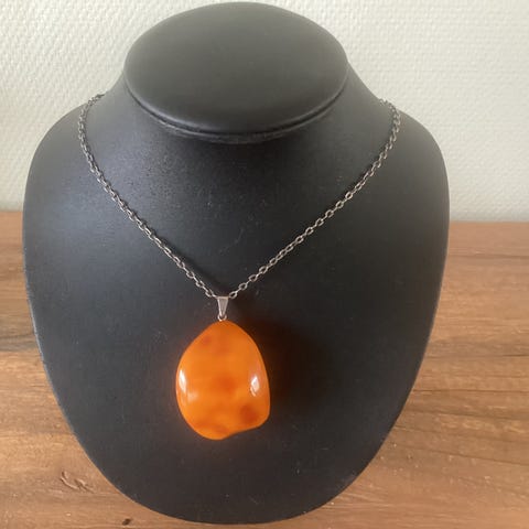 Meget velholdt ravvedhæng i indfattet sterling sølv.