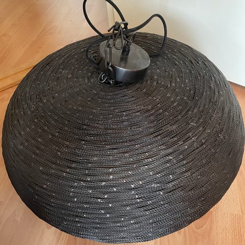 NYPRIS!! Loftlampe i solid jern med kædeophæng. Lampen har en rund skærm og en kæde til ophæng i loftet. Farven er metalgrå med patina. Velegnet til belysning i stue, køkken eller spisestue. Lampen er tung og kan ikke sendes. Skal hentes i Helsingør, interesseret kontakt Ditte på 27706765