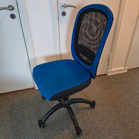 Kontorstol med 5 hjul, passer til alm voksen person, kan indstilles både sæde og ryglæn. Max sidehøjde 52 cm.