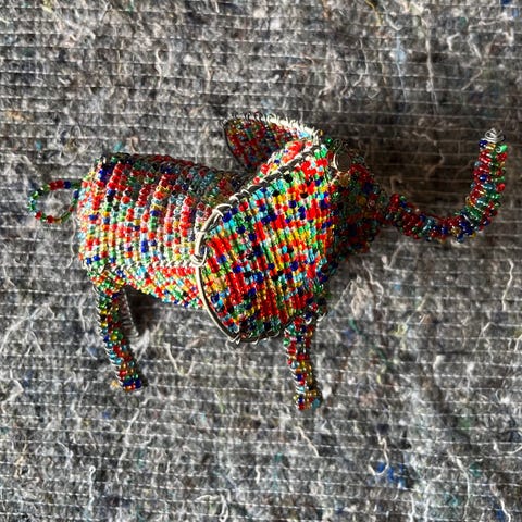 Ravelefant i sølvkæde, med sølvdækken.