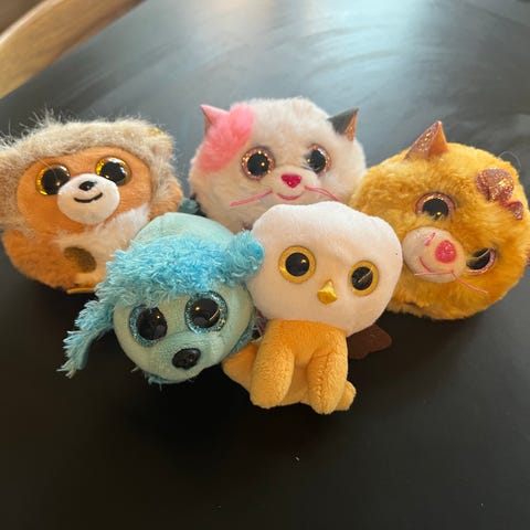 Ty Bamse Legetøj Sæt med forskellige dyr, herunder en abe, en hund, en ræv, en frø og andre små dyr. Bamsesættet består af bløde materialer og er velegnet til børn. Farverne varierer mellem brun, grøn, blå og multicolor. Legetøjet kan bruges til leg og samling.