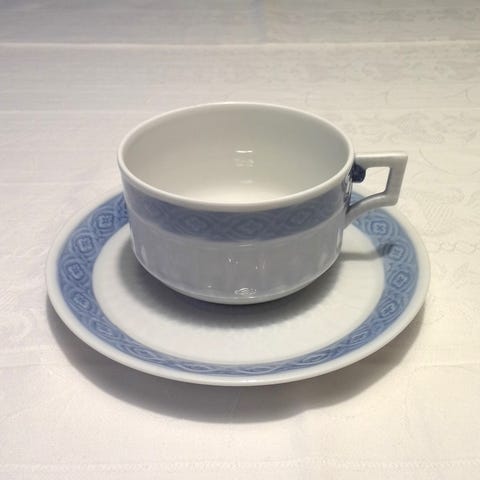 Blå Vifte, Royal Copenhagen. Stor morgenkop / tekop med underkop.