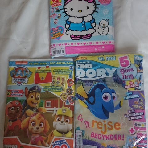 Samling af forskellige børne/ungdomsblade med temaer fra Disney, My Little Pony, Peppa Pig, Peter Plys, Prinsesse og andre populære figurer. Indeholder bøger med farverige illustrationer og forskellige historier, velegnet til børn. Materiale: Papir. Flere titler og formater inkluderet.