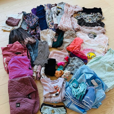 Name it, Pompdelux mfl.Blandet Børnetøj i størrelse 98 til piger. Sættet indeholder forskellige typer tøj i multifarvet design, velegnet til daglig brug. Materialer og specifikke tøjlignende detaljer varierer mellem de enkelte stykker.