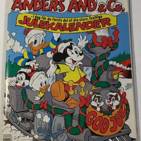 Lille samling Anders And med indlæg i form af julekalendere (og et enkelt skoleskema) sælges for 25 kr. pr. Stk. Bladene er i almindelig brugt stand, men selve indlæggende er pæne. Der er ingen åbne låger, dog har nr. 47 og 48 fra1996 begyndende adskillelse i perforeringen af selve julekalenderne. Se i øvrigt fotos.