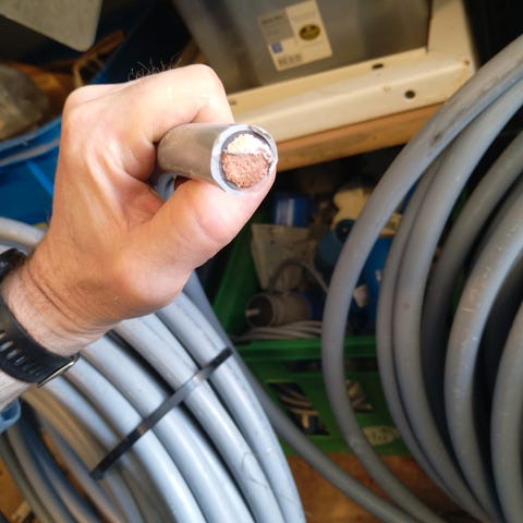 Halogenfrit 5x2,5 mm2 installationskabel 100m, indendørs og udendørs, kan nedlægges i jord, UV-bestandig kappe. Kablet må indstøbes i beton dog ikke vibreret. Egnet til ladestandere til el-biler.