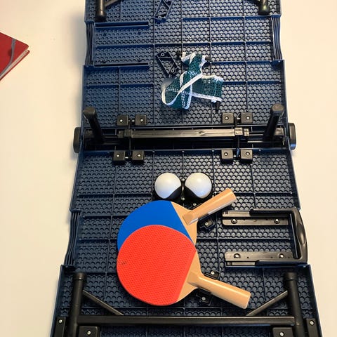 * Bordtennisbordet er NYT, usamlet og stadig i emballage