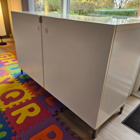 Kommoden er malet lysgrå/beige. Ben er fra ikea.