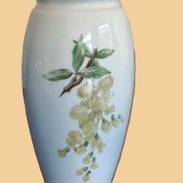 Dette er en vintage Bing & Grøndahl B&G vase med et blomstrende guldregnmotiv