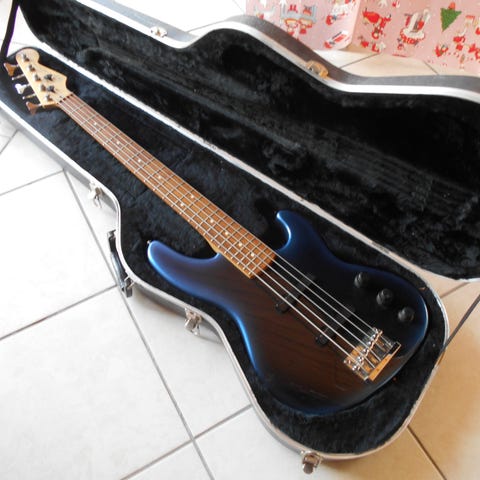 Fender Jazz Bass el-bas fra omkring 2002-2004 tror jeg. Spiller og føles helt perfekt. Vægt 4,4.