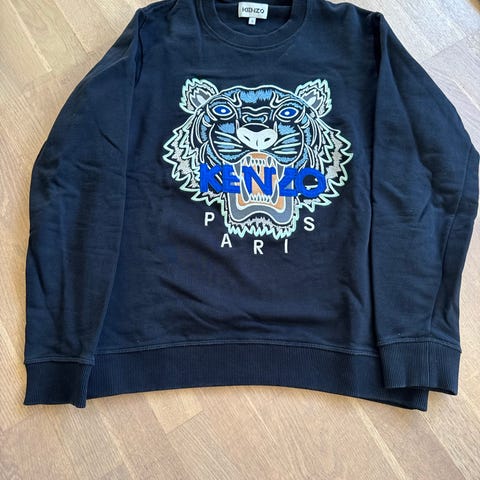 Vi sælger vores datters grå Kenzo Sweatshirt til børn med det ikoniske tigerhoved, størrelse 140. Farven er grå, og designet er unisex. Materialet er bomuld, og trøjen har det ikoniske tiger-logo broderet på fronten.
