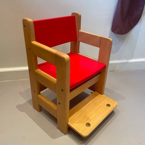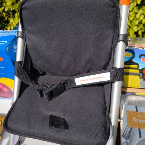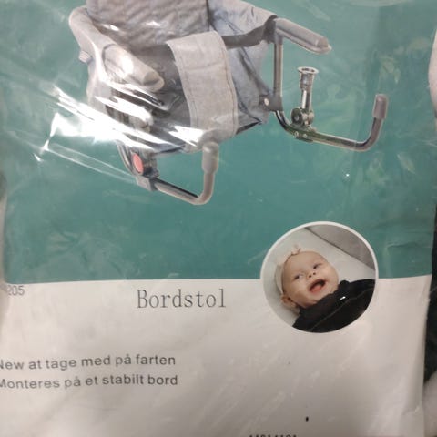 Super praktisk børnestol med tilhørende bord som man kan pakke væk ved blot at slå ind i stolen. Har sikkerhedssele og er bare super praktisk ovenpå alm stole, køkkenbordet mens man laver mad eller på gulvet.