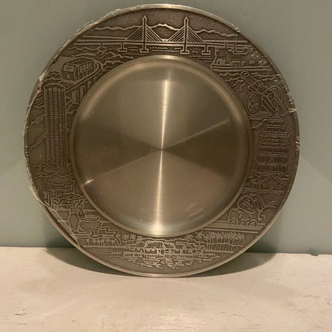 Ny og ubrugt platter fra stor kendt britisk fabrik Wentworth Pewter Bowl Peacock