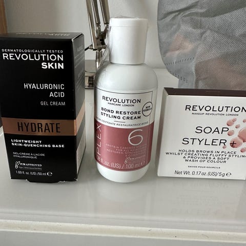 Revolution Skin Hydrate Hyaluronic Acid Gel Cream med en volumen på 50 ml. Produktet indeholder hyaluronsyre og sheasmør, er let og hurtigt absorberende, velegnet til alle hudtyper, og understøtter hudens naturlige balance. Dermatologisk testet og PETA godkendt, velegnet til anvendelse efter serum for at give blød og fugtmættet hud.