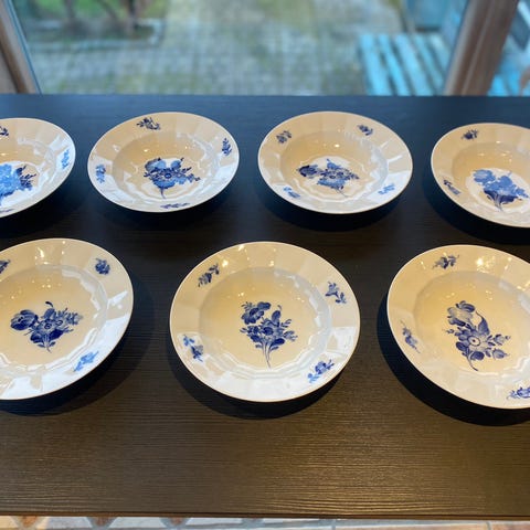 Syv middagstallerkener nr. 1621 i svejfet blå blomst