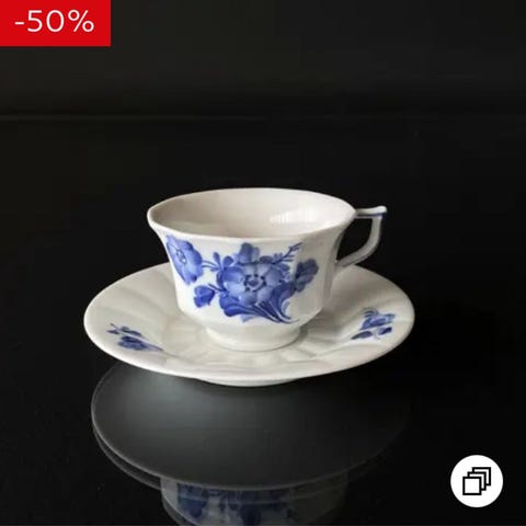 Smukke antikke mocca/espressokopper i blå blomst kantet. De tre er i perfekt stand, den sidste har et lille bitte hak i underkoppen, se billeder.