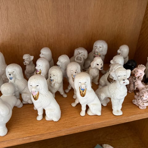 Flotte og søde porcelæns puddelhunde hun og han salt og Peber bøtter i klassisk hvid og uden fejl.