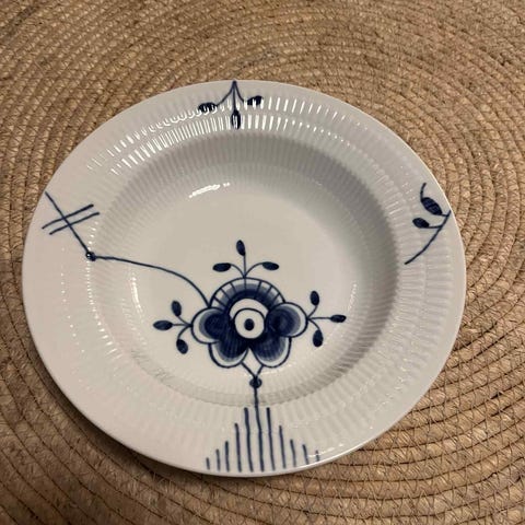 7 stk flotte dybe tallerkner i blå mega mussel nr 604, mønster nr 3