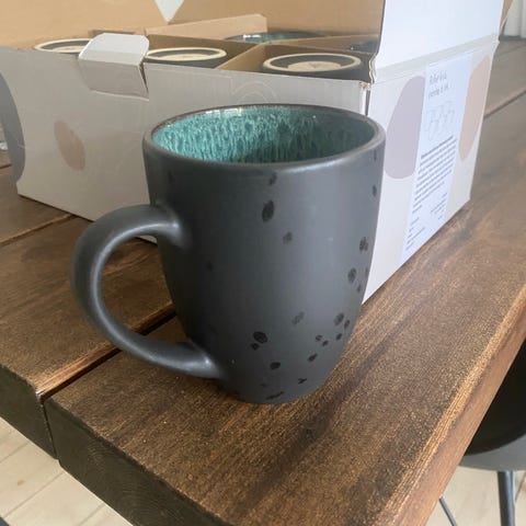 Vipp kaffekopper i grå håndstøbt porcelæn af højeste kvalitet. Kaffekopperne har en mat finish og en glat inderside. Som nye