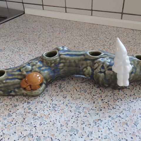 Nissepige der sidder på en træstup, med plads til et fyrfadslys ved siden af. håndlavet, porcelæn, H: 10 cm, i æske, sender gerne, dog ikke med fiks færdig, porto oveni