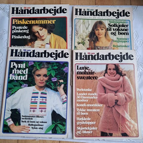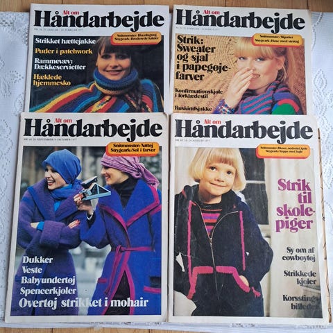 4 årgange med blade med mønster i. Retro. Årgang 1982- 1984-1985-1986 Kunne være der var noget der er på mode igen. Afhentes i Frederikssund. For 100kr.