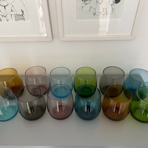 Glas service sæt fra Zara Home i lysegrøn og støvet rosa, 4 x tallerkner & 4 x kopper med underkopper. Aldrig brugt, stået i et skab