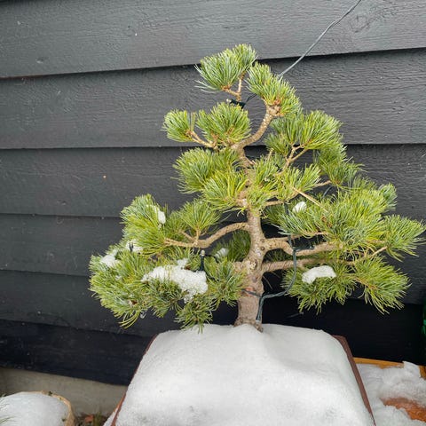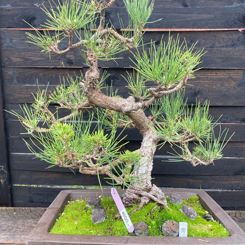 Bonsai Japansk Sortfyr. Karakteristisk snoet stamme. Ca 48 cm. høj. Pottens mål: 36x26x15. Nye skud er godt fremme efter sommerbeskræring. Klar til wiring.