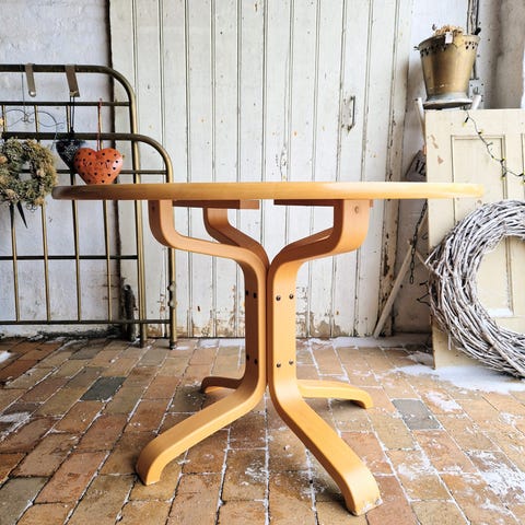 rundt egetræ spisebord