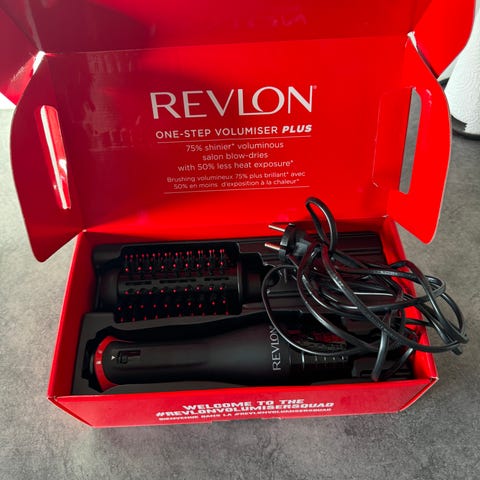 Revlon One-Step Hair Dryer and Volumizer, hair styling tool in black color. Designed to dry and style hair simultaneously with a unique brush design. Suitable for various hair types.