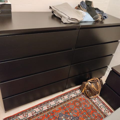 IKEA malm kommode i hvid farve bestående af 2 stk. Hver kommode har to skuffer og er fremstillet i materialer egnet til opbevaring. Designet til brug i hjemmet til organisering af personlige ejendele.