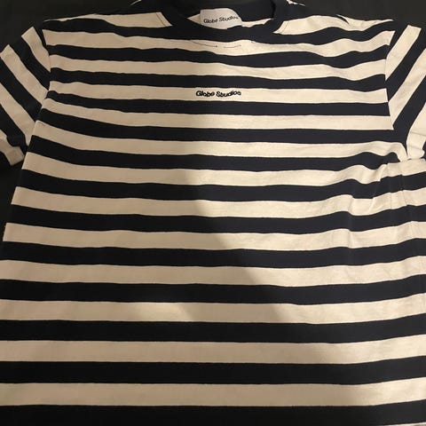 Globe Studios sweatshirt i hvid farve, størrelse S. Fremstillet i bomuld med rund halsudskæring og lange ærmer. Sweatshirten har trykt Globe Studios-logo på bryst og ryg.