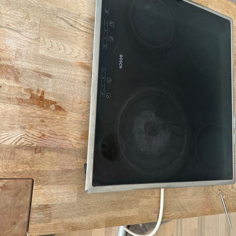 Bosch keramisk kogeplade med fire kogezoner. Mål yderkant ca. 51,5 x 57,5. Uden ledning. Skal afhentes.