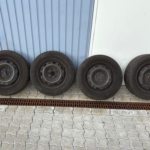 Michelin dæk med fælge i størrelsen 185/60 R14. Sættet indeholder 4 stk dæk med tilhørende fælge. Dækkene er monteret på aluminiumsfælge med 4 eger. Har været monteret på en Peugeot 206