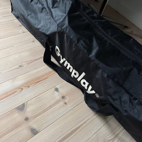 Gymplay oppustelig Airtrackmed tilhørende elektrisk luftpumpe. Måtten er designet til gymnastik og træning, og kan pustes op og tømmes ved hjælp af den medfølgende pumpe. Produktet leveres med transport taske. Airtracken er 8 m lang og 1,5 m bred og 15 cm høj. Den købt for 8.000 kr