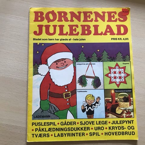 Med hyggelige tegninger og side med "på rundtur i nissernes hovedstad" spil