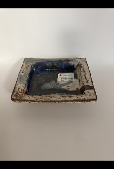 Kanden har en kurvet form overflade og et dekorativt låg. Den er fremstillet af keramik med et rustikt, glaseret udseende, der kombinerer brune nuancer med blå og grå detaljer.,Afhentes i:,Røde Kors Kolding (621),Bemærk at mail, chat og beskeder ikke besvares, og varen skal købes på knappen "Gå til varen"
