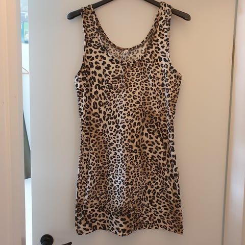 Sød t-shirt med gråt leopard-mønster i sort, grå, hvid. 100% polyester.