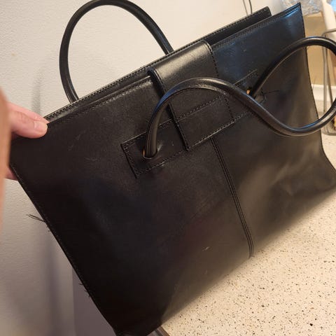 Håndtaske, atlas, sort lædertaske ca 20x15 med mange lommer, nydelig og pæn, og en "Gold" - sof/læder - mål 25x20 med lomme og spænde + andre tasker frit valg