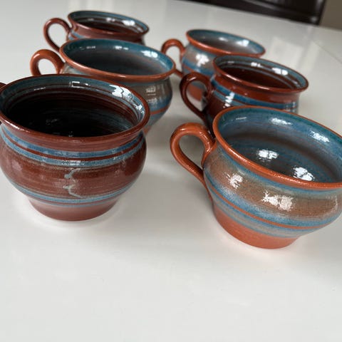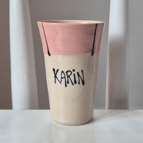 Porcelæn, Kande og 4 krus, Karin Meijer, Håndlavet svensk keramik fra Karin Meijer bestående af 4 små krus samt en kande (1,3 l).