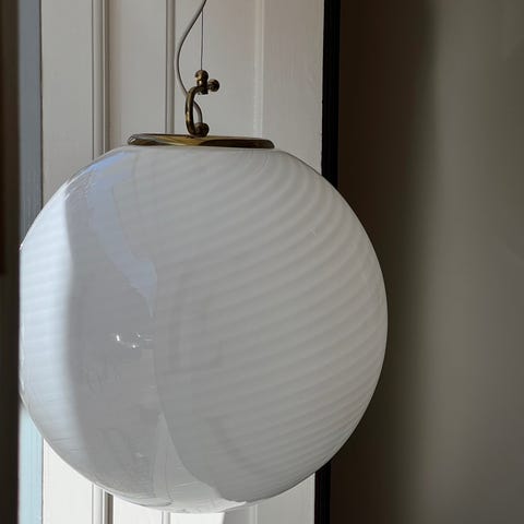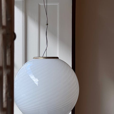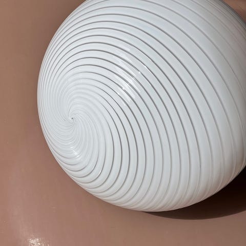 Vintage Murano white swirl ceiling lamp, D50 cm. Good vintage condition. Handmade in Italy, ca. 1970s. Comes with a brass canopy and an adjustable mounting/wire. Please note that the handmade Murano glass can have small imperfections and unique characteristics, e.g. air bubbles or variations in patterns and shapes etc.