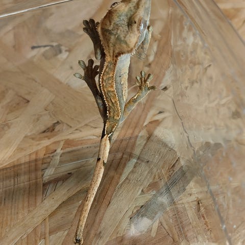 Sund og velfungerende kronegekko, som spiser fint, har normal afføring og netop har fået skiftet hamp. Klar til at flytte til et nyt og godt hjem.